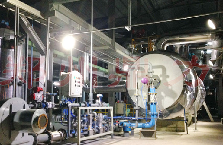 其工藝流程:生物質顆粒燃料經過自動送料系統進入高溫氣化室裂解,裂解反應后產生顯熱和中間產物 H2,CnHm,Co,CH4 等大量高溫燃氣成份,供風系統則從爐子的底部供入,燃氣成份通過燃氣噴嘴直接進入氧氣充足的高溫燃燒室內進行完全燃燒,放出潛熱。。