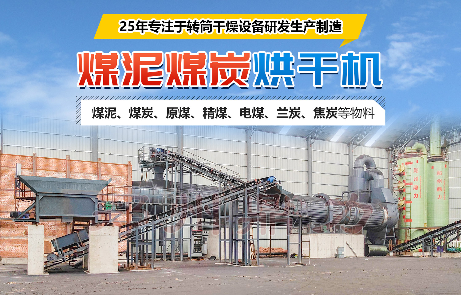 泥炭烘干機:泥炭滾筒烘干機是針對泥煤水分高、粘性大、比重小、耐熱性低、易結團等特性和市場需求專門研制生產。烘干機系統主要由熱源、打散喂料、帶 式上料機、回轉滾筒、卸料器、除塵、帶式出料機、引風機、泥炭回燃、溫控和配電操作等系統系統構成。該烘干機工作原理如下:水分35-60%左右泥炭通過 打散喂料機均勻給入烘干機,在烘干過程中,泥炭經過六個工作區:一是導料區,濕泥炭進入此區與中低溫熱風接觸迅速蒸發水分,物料在大導角的抄板抄動下,形 不成粘結便被導入下一個工作區;二是反復破碎捶打清理區,在此區設備設計有破碎捶打清掃裝置,濕泥炭被柵狀抄板抄起破碎捶打,大塊濕煤泥經過反復破碎捶 打,被破碎揉搓成20-30mm小顆粒炭團,形成料幕狀態,增加熱交換面積,提高干燥速率,清掃裝置合理地清掃內壁粘附的泥炭,防止泥炭粘接;三是主干燥 區,經過二區處理的濕泥炭已呈顆粒狀松散狀態,物料在此區被傾斜揚料板抄起,形成均勻料慕狀態,與熱風充分熱交換,強力降水;四是捶打破碎干燥區,在此區 煤泥經過反復捶打破碎,泥炭顆粒從20-30mm破碎為3-15mm(客戶要求粒度),水分進一步降低;五是強化干燥區,經過破碎的小顆粒煤泥在從區域被 密集抄板揚起,充分吸收熱風熱量,排出水分,達到水分要求標準,準備出料;六是出料區,為防止出料揚塵,滾筒在此區不設抄板,物料滾動滑行至排料口,完成 整個烘干過程。泥炭成為水分10-15%、3-15mm顆粒型煤或者有機肥。