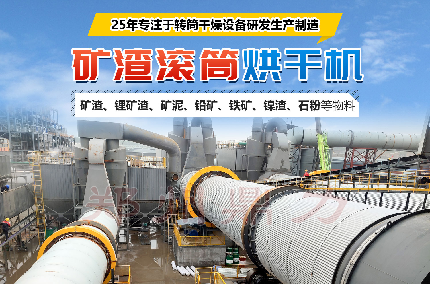 鼎力鋰礦渣烘干機主要由熱源、喂料裝置、上料輸送機、回轉滾筒、出料輸送機、引風機、除塵器和配電柜構成。該套設備工作原理如下:鋰礦渣由于具有一定的粘性,濕鋰礦渣進入干燥滾筒后分以下幾個工作區:一是導料區,濕鋰礦渣進入此區與高溫熱風接觸迅速蒸發水分,鋰礦渣在大導角的導料板抄動下,形不成粘結便被導入下一個工作區;二是抄起清理區,濕料在此區被抄板抄起形成料幕狀態,鋰礦渣落下時易形成粘結滾筒壁現象,在此區由于設備設計有清掃裝置,清掃裝置便十分合理地清掃了內壁粘附的鋰礦渣,在這個過程中,清掃裝置對于鋰礦渣團球結塊也起破碎作用,從而增加了熱交換面積,提高了干燥速率;三是傾斜揚料板區,濕鋰礦渣在此區已 呈低水分松散狀態,鋰礦渣在此區已不具有粘結現象,經過充分熱交換后鋰礦渣達到所要求的水分狀態,進入出料區;四是出料區,滾筒在此區不設抄板,鋰礦渣在此區滾動滑行至排料口,完成整個烘干過程。