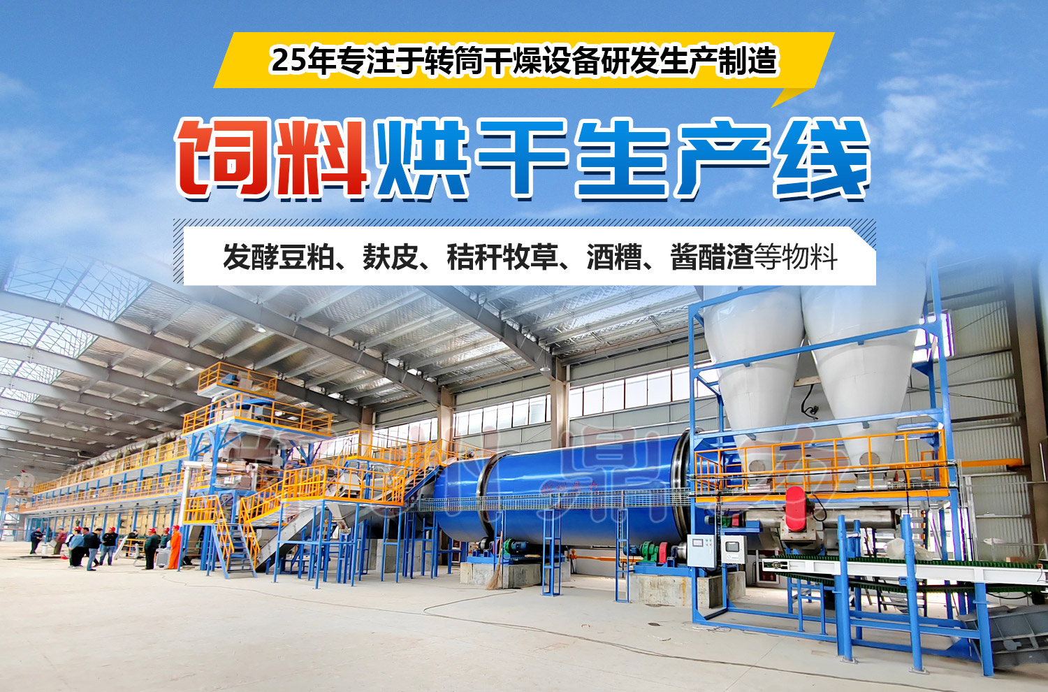 飼料烘干機(jī)主 要由供熱源、上料機(jī)、進(jìn)料機(jī)、回轉(zhuǎn)滾筒、出料機(jī)、引風(fēng)機(jī)、卸料器和配電柜構(gòu)成;脫水后的濕物料加入干燥機(jī)后,在滾筒內(nèi)均布的抄板器翻動(dòng)下,物料在干燥機(jī)內(nèi) 均勻分散與熱空氣充分接觸,加快了干燥傳熱﹑傳質(zhì)。在干燥過(guò)程中,物料在帶有傾斜度的抄板和熱氣質(zhì)的作用下,至干燥機(jī)另一段星形卸料閥排出成品。